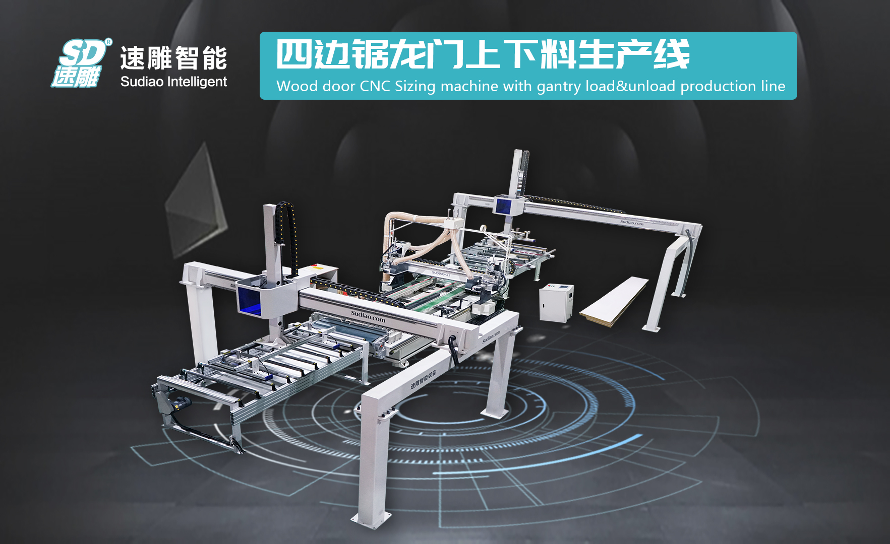木門生產(chǎn)過程中需要根據(jù)要求對門的尺寸進行裁切,傳統(tǒng)鋸切設(shè)備由于自動化程度低,會導致鋸切尺寸誤差較大,因此,為了更快更精準的鋸切定尺,木門四邊鋸應運而生。