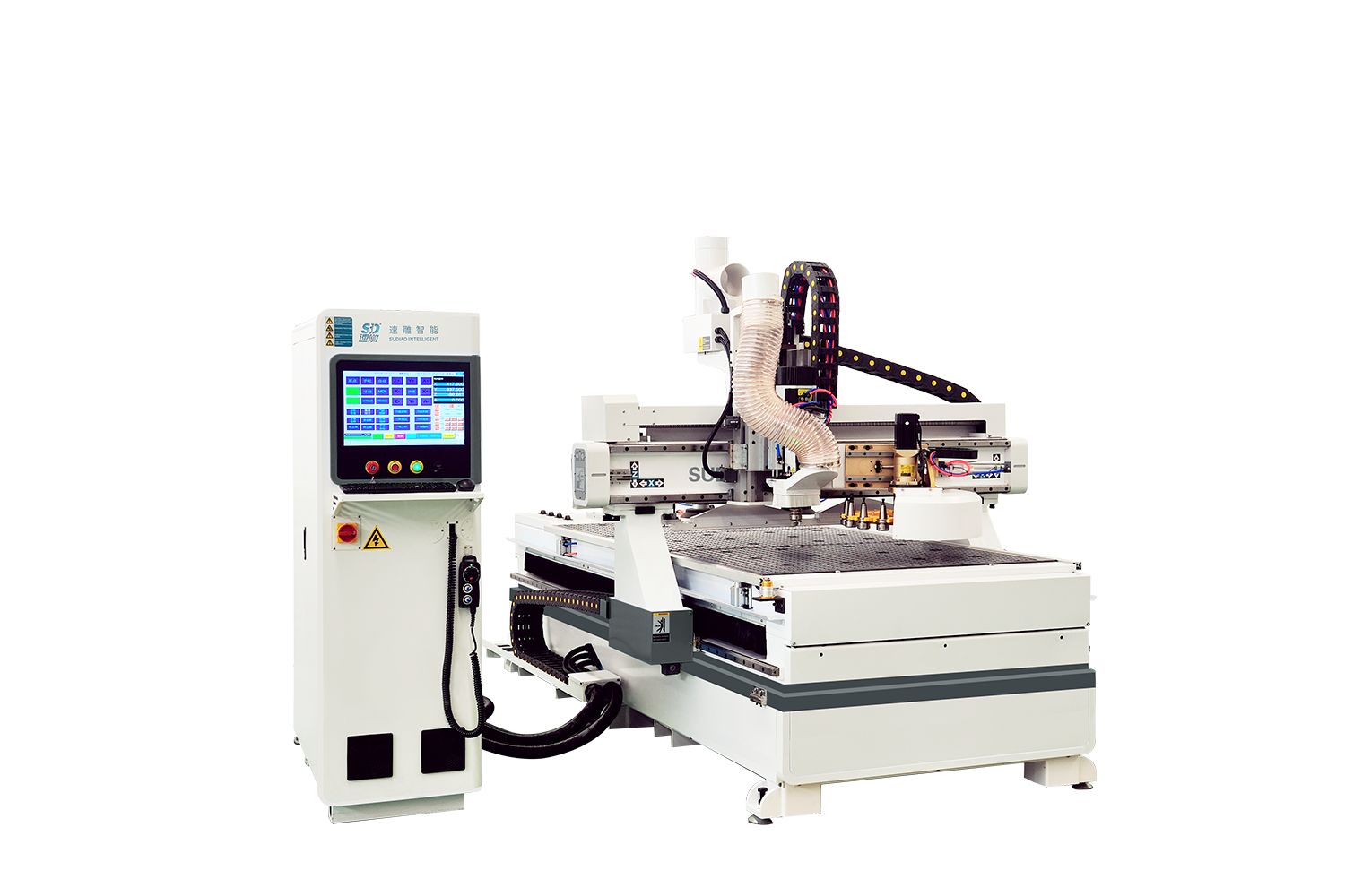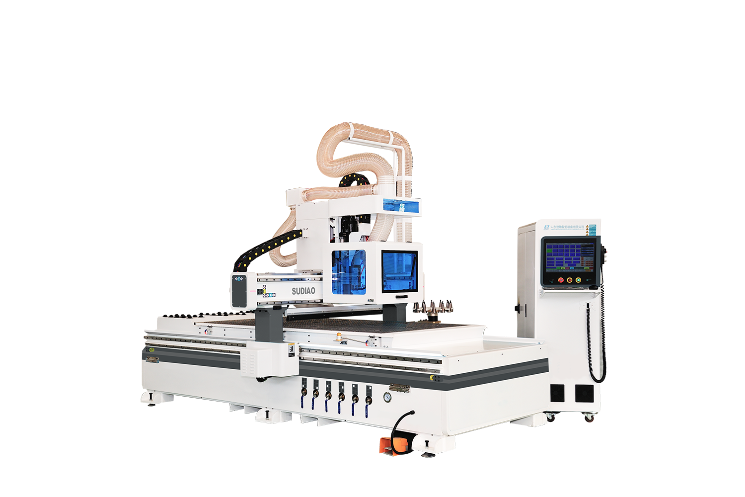 (1)門(mén)墻柜一體化,一機(jī)在廠,輕松應(yīng)對(duì)各種五金拉手、鉸鏈孔、拉直器、海棠角、門(mén)鎖、合頁(yè)槽等工藝。